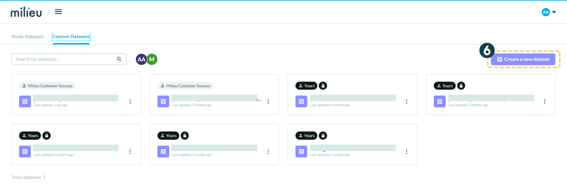 6. Create custom dataset - This button allows you to be navigated to a fresh dataset page where you may customise various dataset that you own into one integrated dataset.